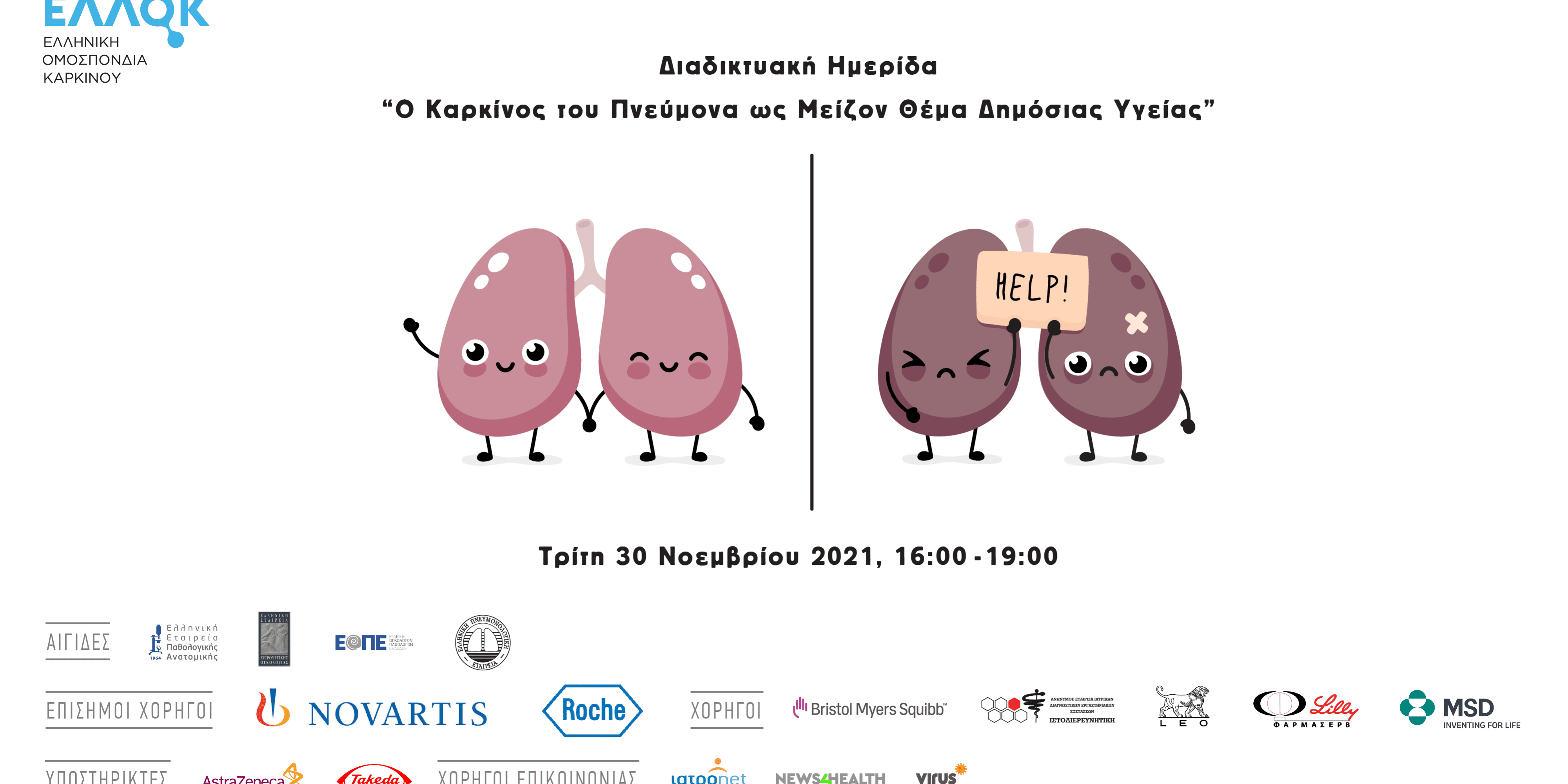 Η Ελληνική Ομοσπονδία Καρκίνου – ΕΛΛ.Ο.Κ. διοργανώνει για τον μήνα Νοέμβριο εκστρατεία ενημέρωσης για τον καρκίνο του πνεύμονα, με θέμα «Ο Καρκίνος του Πνεύμονα ως Μείζον Θέμα Δημόσιας Υγείας» η οποία περιλαμβάνει: