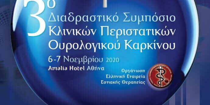Η Ελληνική Εταιρεία Εστιακής Θεραπείας πραγματοποιεί Συνέδριο με τίτλο «3ο Διαδραστικό Συμπόσιο Κλινικών Περιστατικών Ουρολογικού Καρκίνου», στις 6 και 7 Νοεμβρίου 2020 στο Ξενοδοχείο Amalia στην Αθήνα.