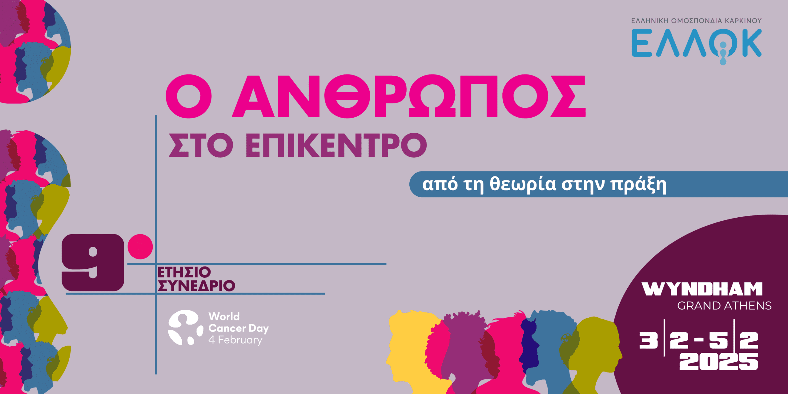 Η Ελληνική Ομοσπονδία Καρκίνου – ΕΛΛΟΚ ανακοινώνει τη διεξαγωγή του 9ου Ετήσιου Συνεδρίου της, το οποίο θα πραγματοποιηθεί στις 3, 4 και 5 Φεβρουαρίου 2025, στο ξενοδοχείο Wyndham Grand Athens, στην Αθήνα.