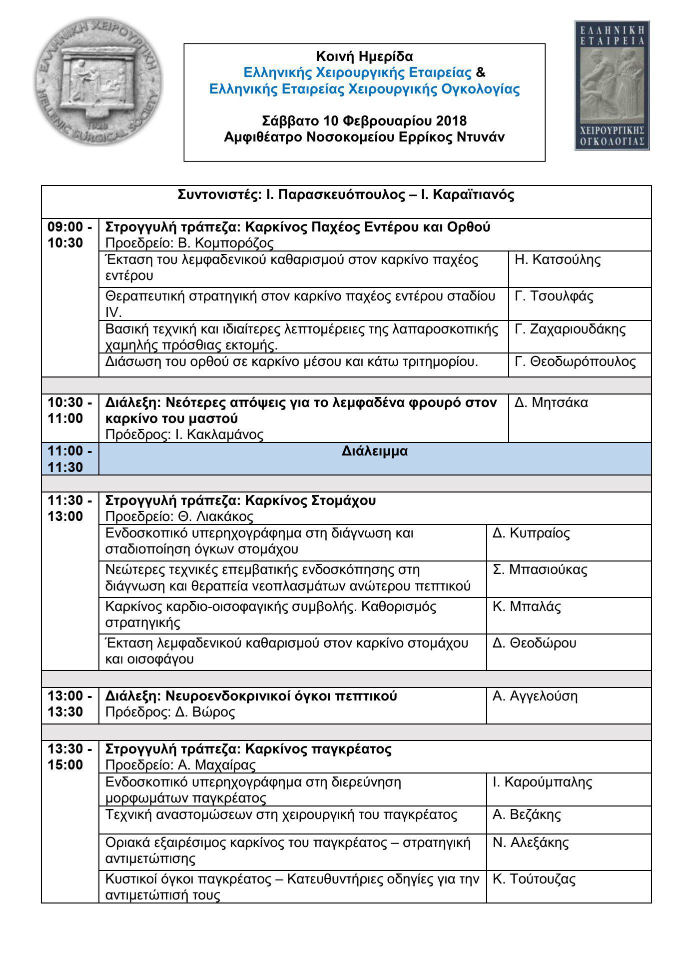 Κοινή Ημερίδα Ελληνικής Χειρουργικής Εταιρείας & Ελληνικής Εταιρείας Χειρουργικής Ογκολογίας